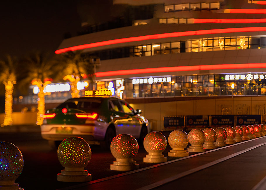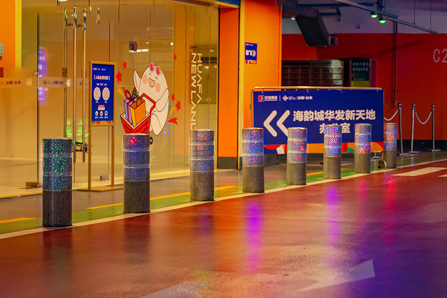 新型路障石材具有擋車功能,提升場所的形象和安全性,夜晚展現(xiàn)出特別絢麗的效果